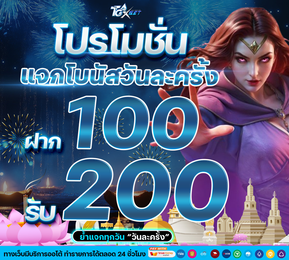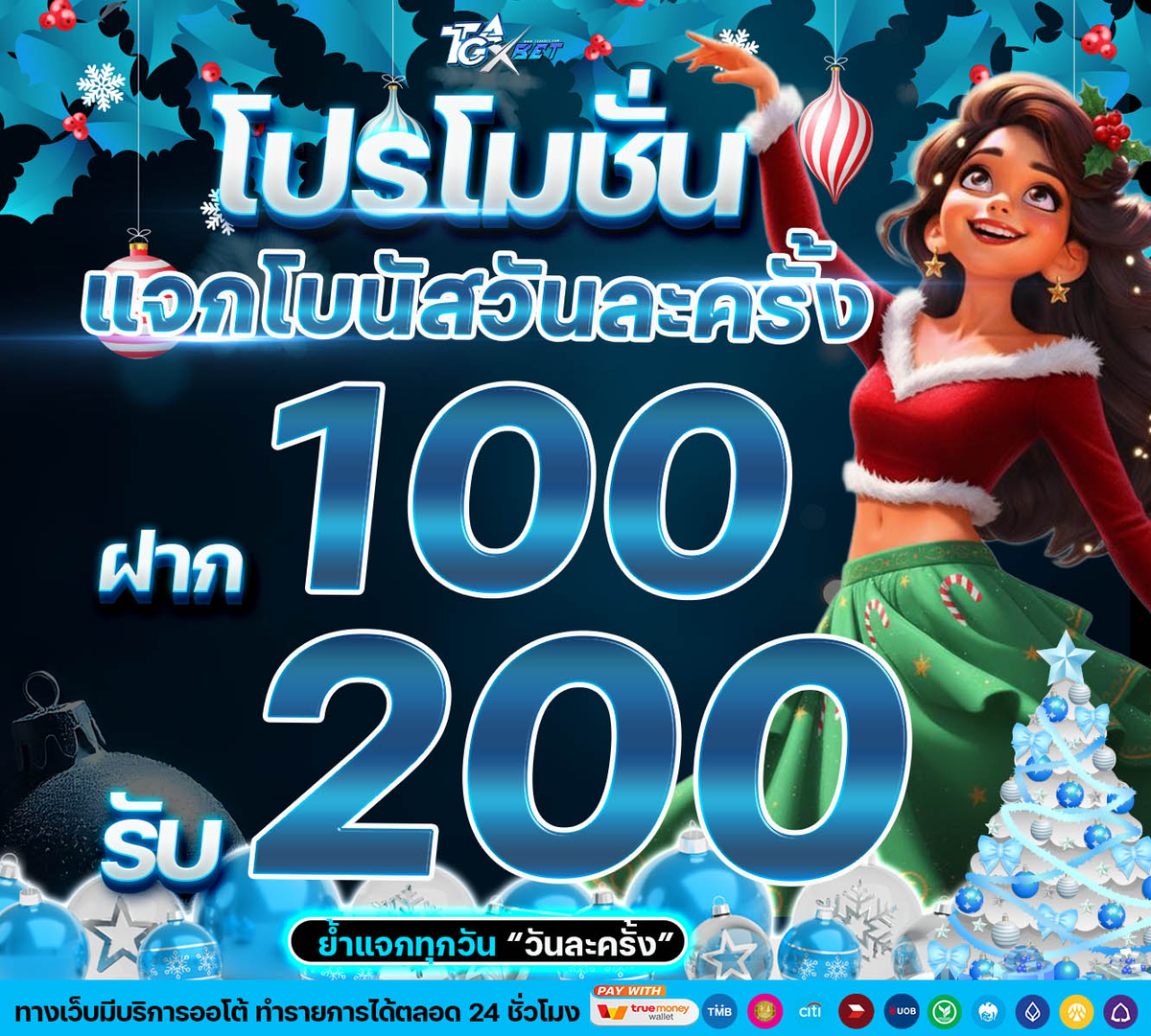 แจกโบนัสวันละครั้ง ฝาก 100 รับ 200