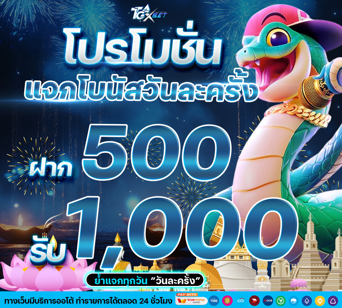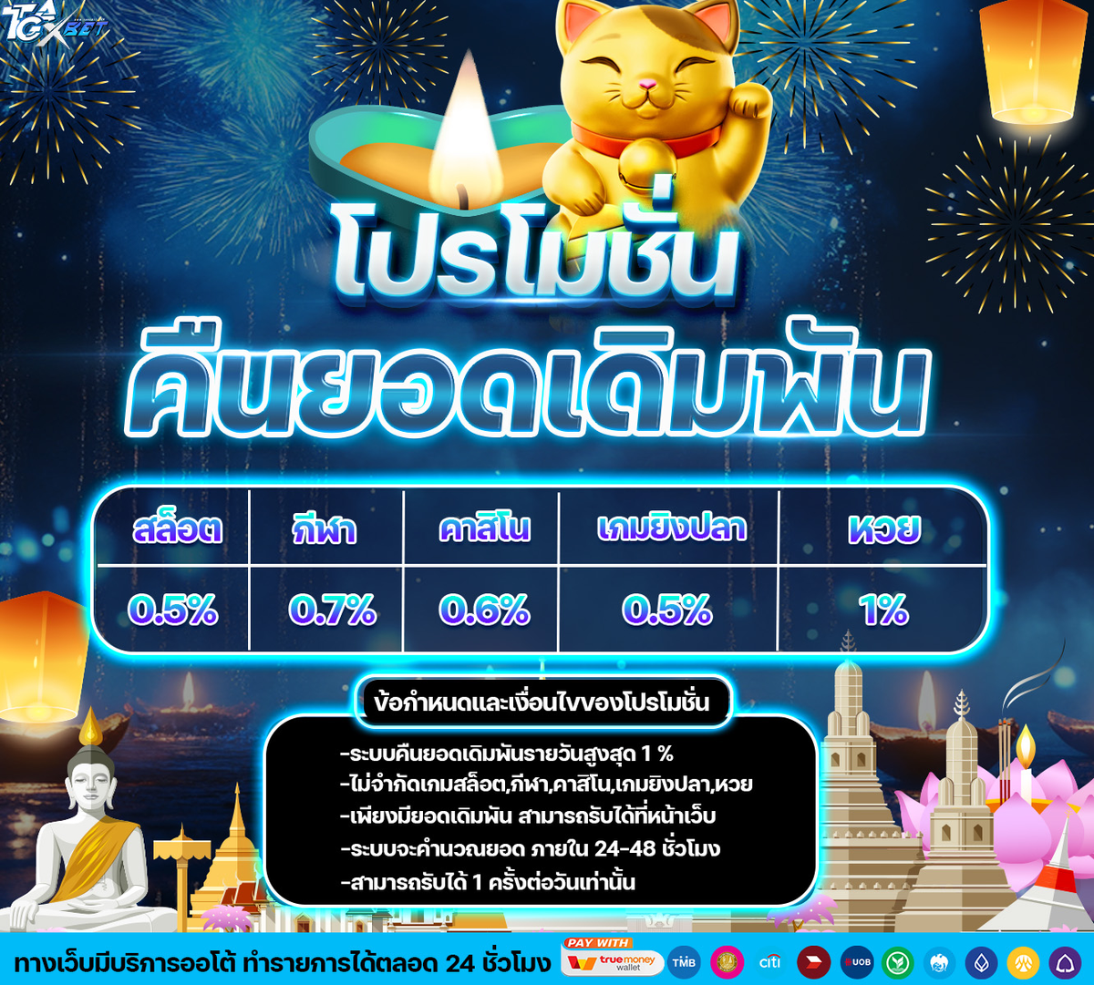 - ยอดฝากแรกของวัน ตัดรอบทุกวันเวลา 00.00 น.