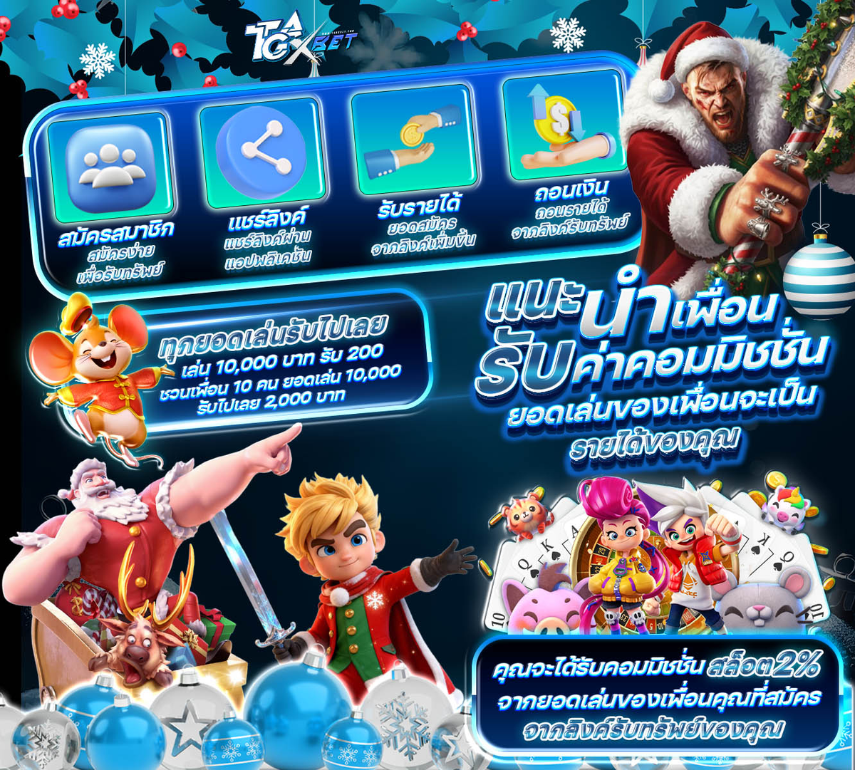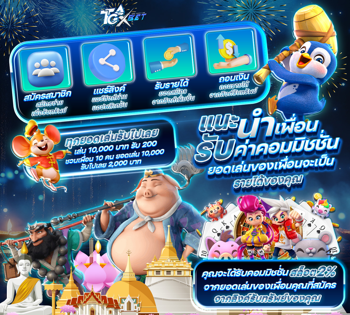 ชวนเพื่อนมาเล่นกับ TgaXbet เราแบ่งให้ทันที 2%