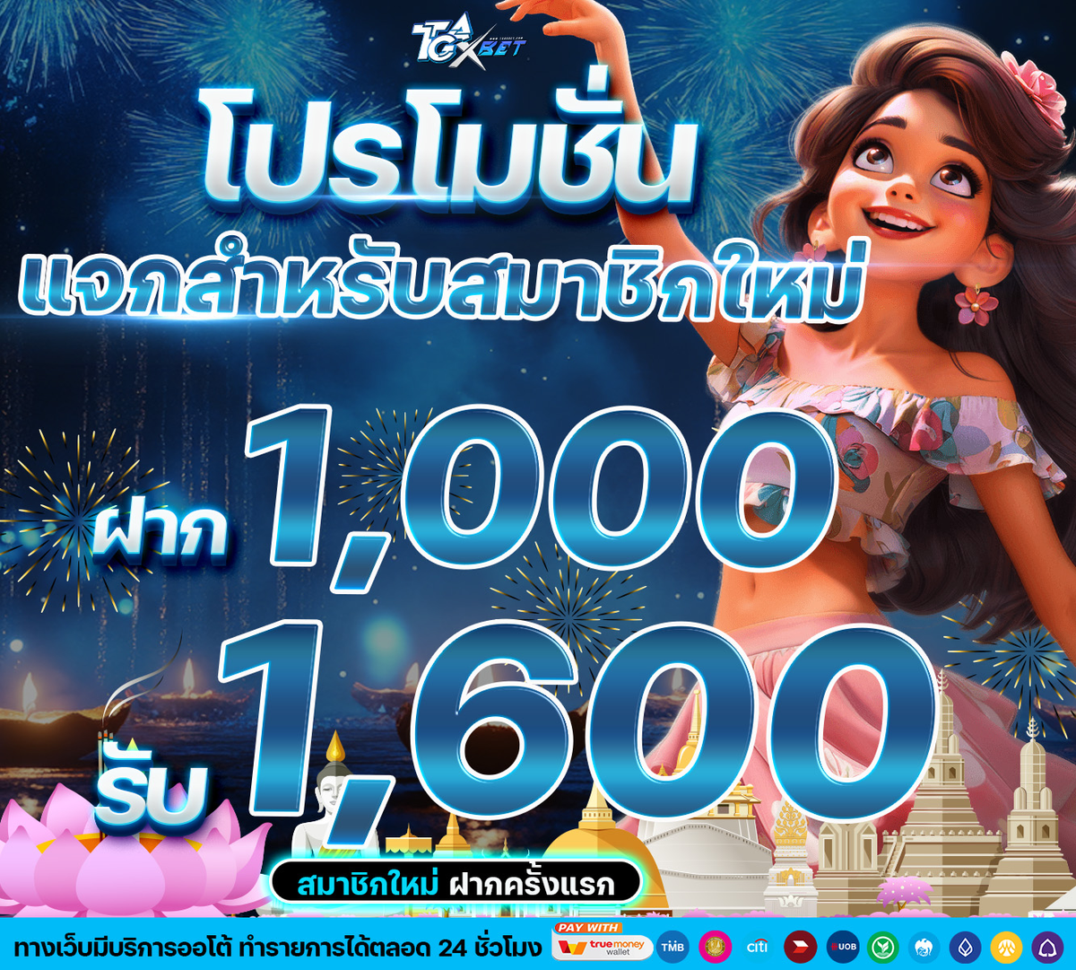 ฝากแรกของวัน 1,000 รับ 1,600