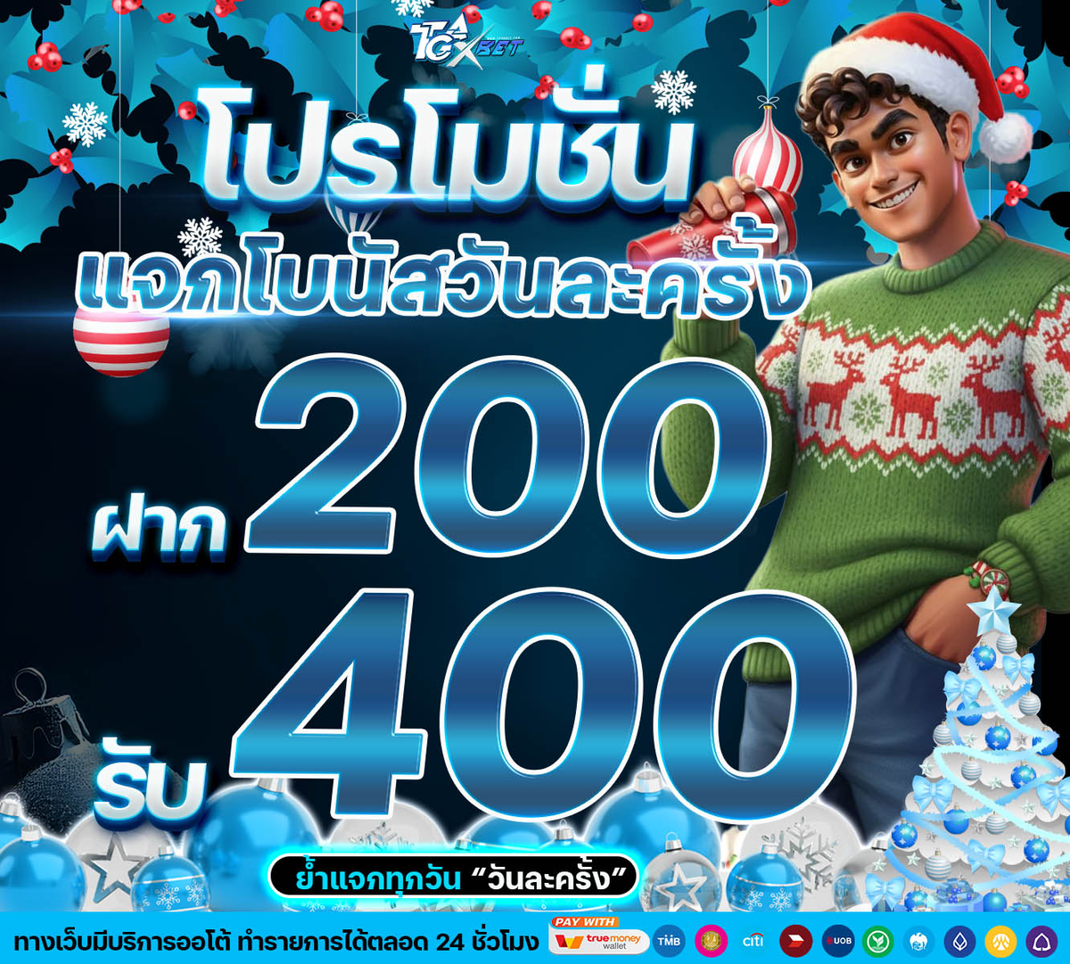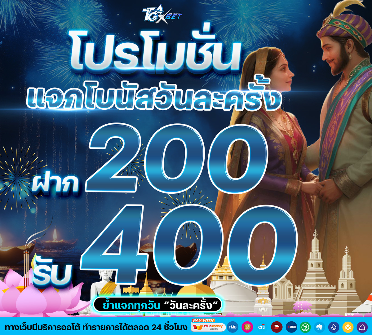 แจกโบนัสวันละครั้ง ฝาก 200 รับ 400