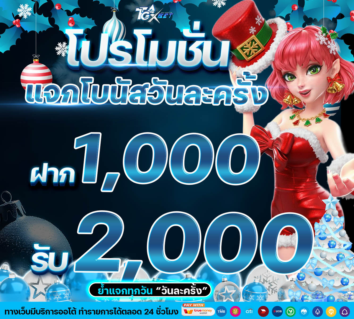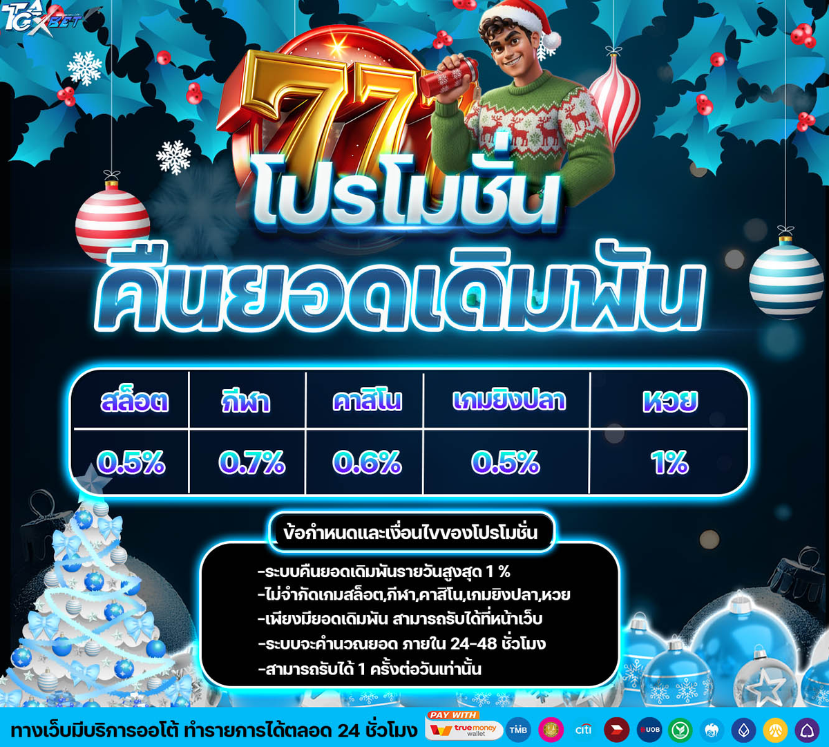 - สมาชิกของ TGAXBET สามารถกดรับได้วันละ 1 ครั้ง ตัดรอบทุกวัน 00.00 น.